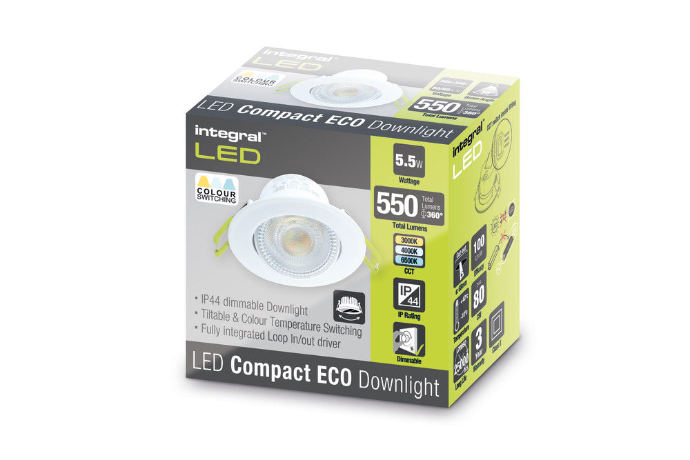 Compact Eco is a range of hard-wearing, efficient and versatile downlights suitable for many applications, including wet areas of buildings in various sectors, including shops and residential. Installation is made easy with tool-free loop in-out terminal blocks, and the range comes with CCT switching tiltable options and interchangeable bezels to fit multiple environments.