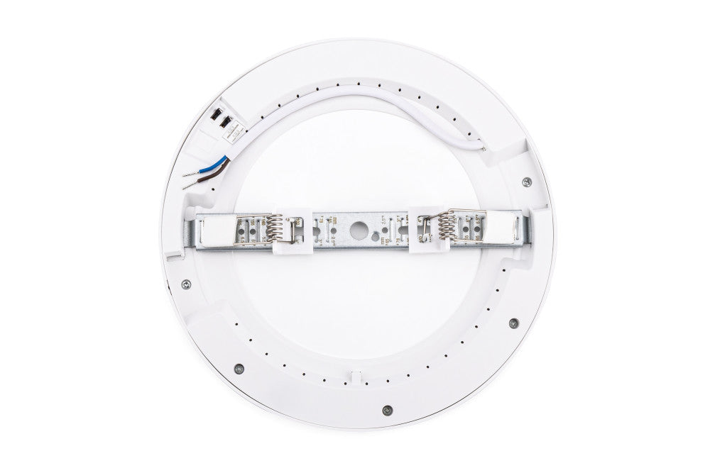 A configurable cut-out size from 65 to 205mm with a surface mount option provides installation flexibility. The integrated driver eliminates visible flicker, and a frosted diffuser delivers a uniform light.