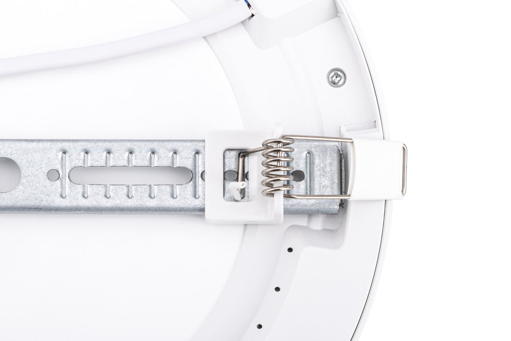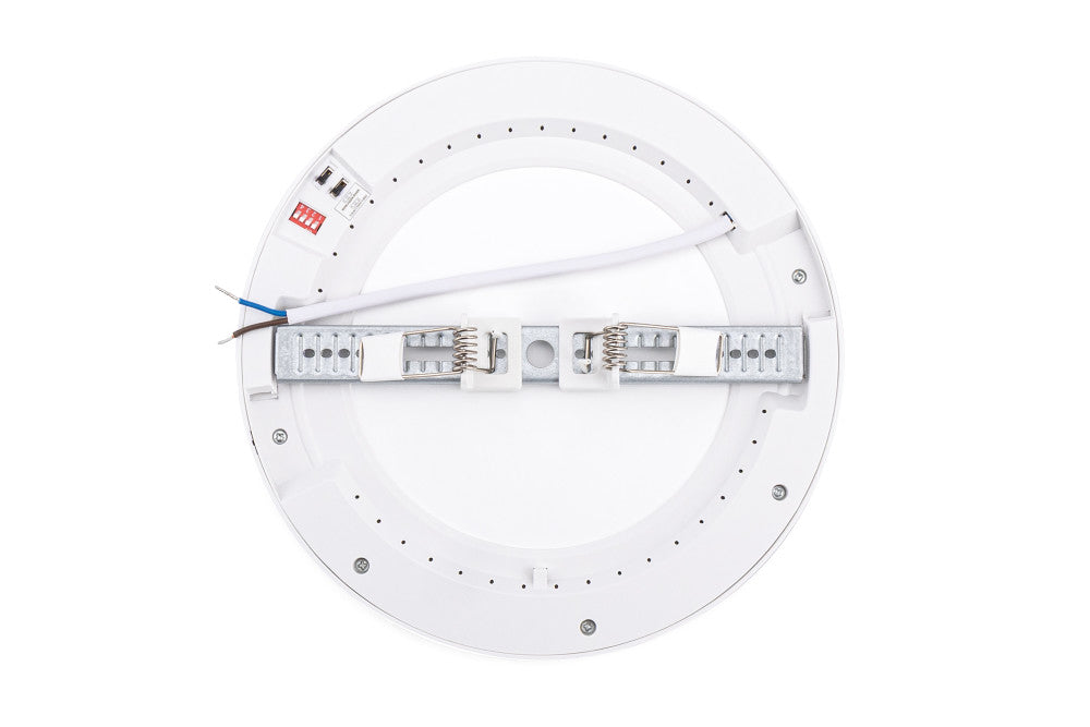A configurable cut-out size from 65 to 205mm with a surface mount option provides installation flexibility. The integrated driver eliminates visible flicker, and a frosted diffuser delivers a uniform light.